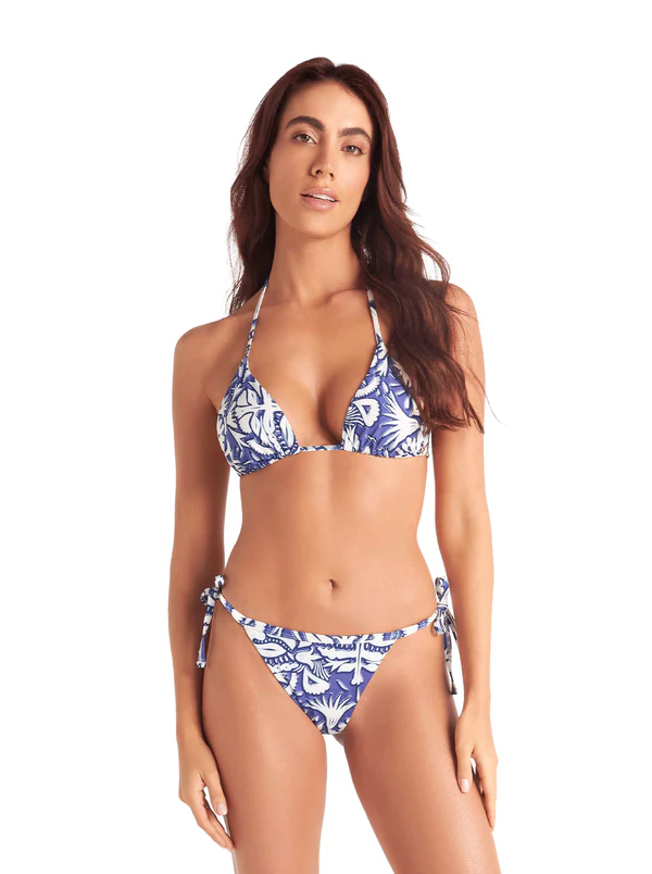 Un panty muy versátil que gracias a su silueta cortina tienes la posibilidad de ajustar su cubrimiento adelante y atrás. Tiene unos aros decorarivos en sus laterales que hacen juego con el top para un look muy divertido e interesante.